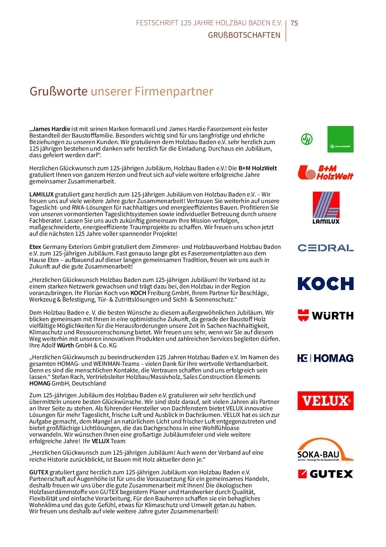 Herzlichen Glückwunsch zu beeindruckenden 125 Jahren Holzbau Baden e.V. Im Namen des gesamten HOMAG- und WEINMAN-Teams – vielen Dank für Ihre wertvolle Verbandsarbeit. Denn es sind die menschlichen Kontakte, die Vertrauen schaffen und uns erfolgreich sein lassen.